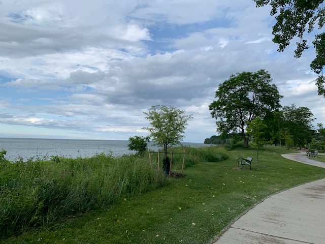 4. Last October I stood along that shore, albeit a few miles west of there, taking in the view. The skyscrapers of Toronto were just visible on the horizon, through the misty atmosphere above the lake. I experienced it as “pretty” and was glad to add the memory to my trove. I think I might have used a different adjective if I’d been obliged to nest there year-round.