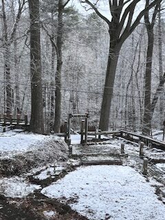 We’re past winter-winter now, but it’s still not spring. When the snow melts away, the ivy shows green. That’s about it, vegetation-wise. I’m not seeing buds, let alone flowers. And then it snows again.